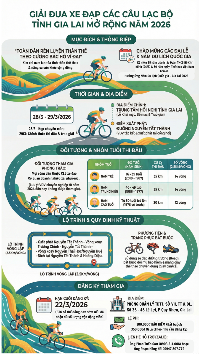 Thứ sáu, 27/02/2026 | 09:09 A- A A+ | Giải đua xe đạp Tỉnh Gia Lai mở rộng năm 2026 Chia sẻ Đọc bài Lưu Chi tiết xem tại tập tin đính kèm VH Tập tin đính kèm Trình duyệt không hỗ trợ iframe. Tác giả: VH Nguồn:Sở VH, TT & DL Sao chép liên kết Tin liên quan Không có dữ liệu