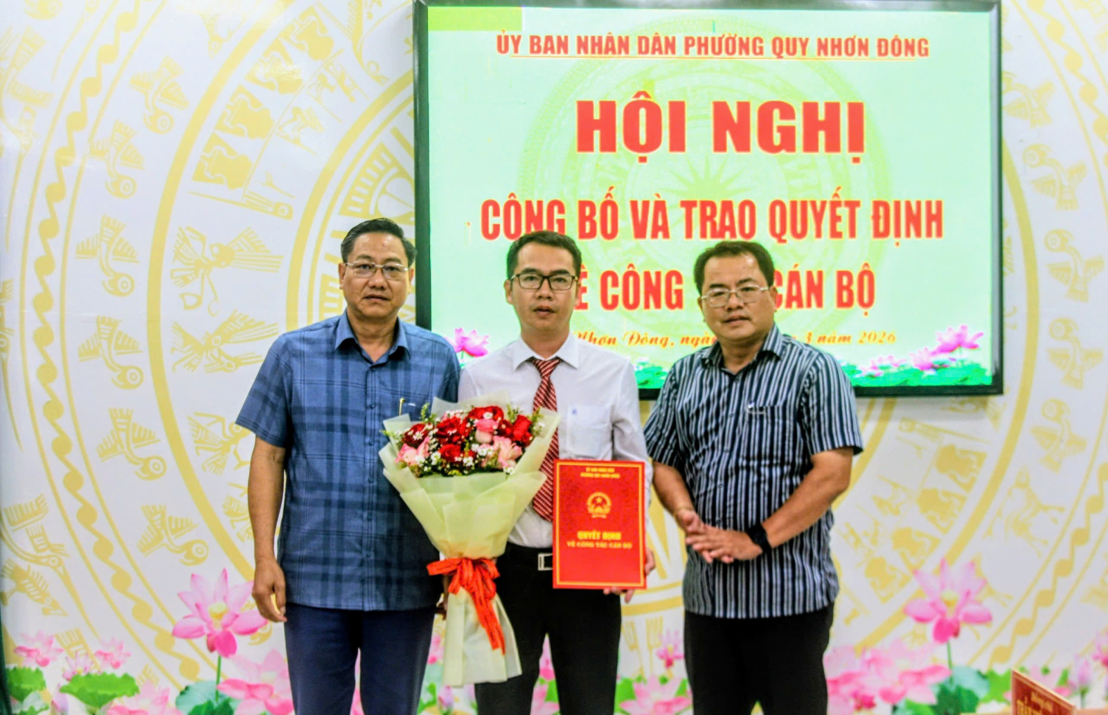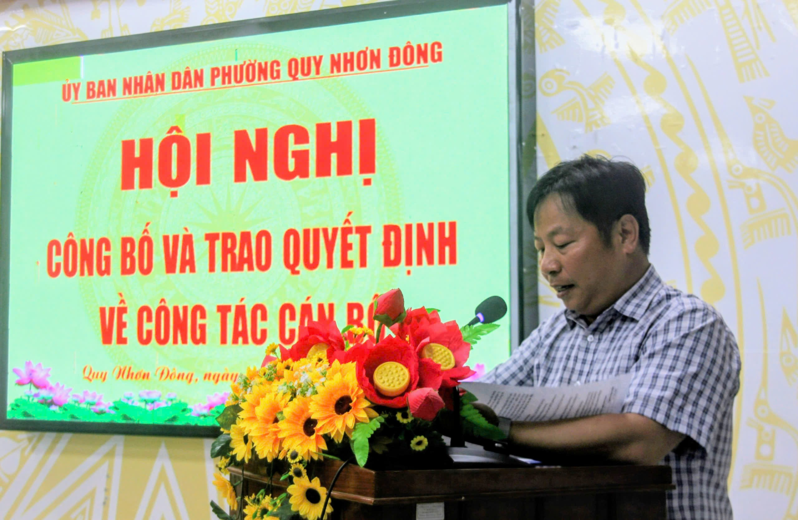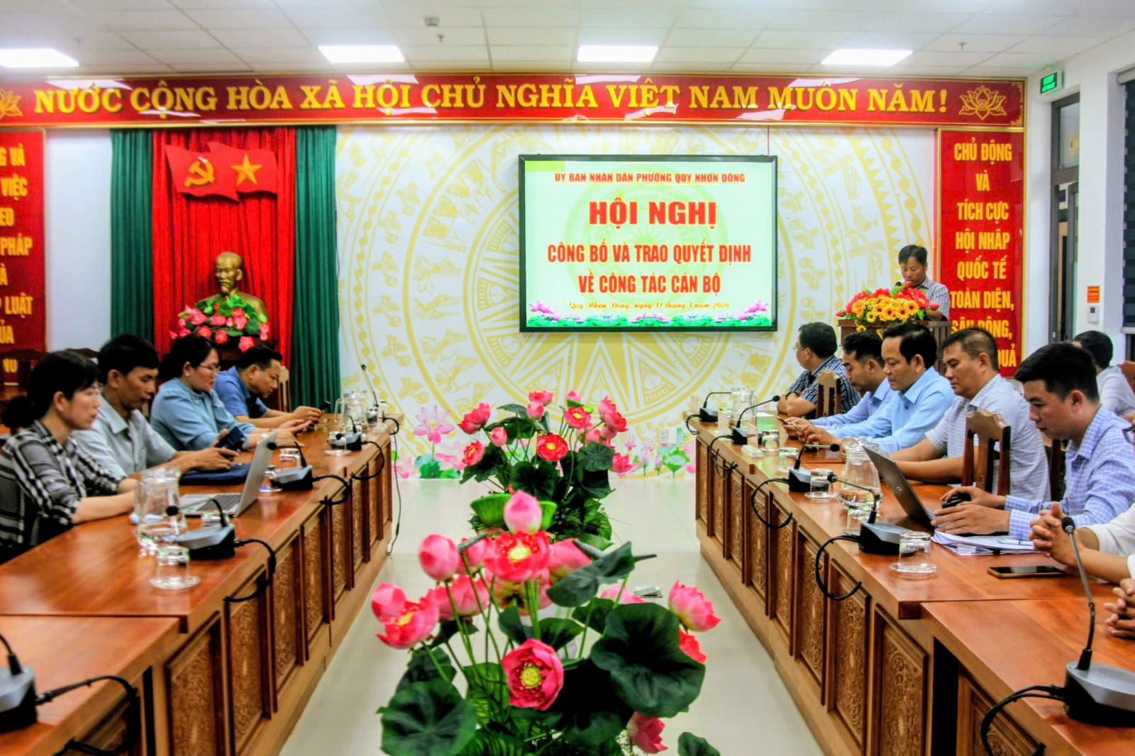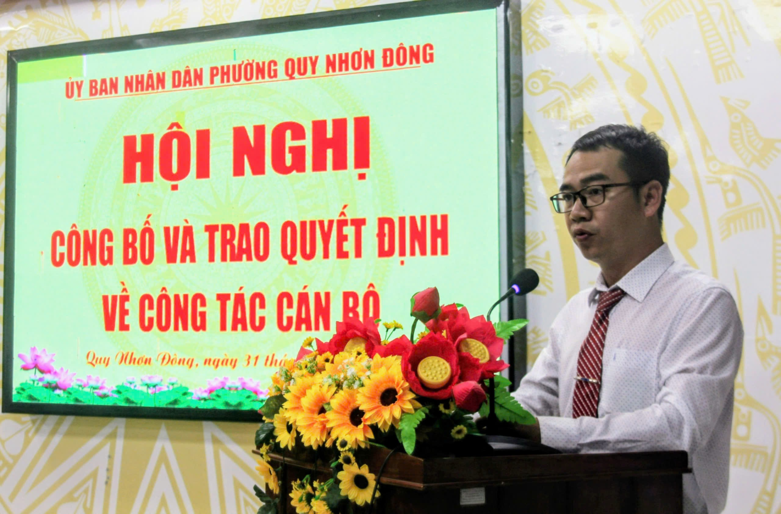Tại Hội nghị, đồng chí Đỗ Xuân Nhất- Trưởng phòng Văn hóa - Xã hội phường đã công bố Quyết định số 579/QĐ-UBND ngày 30/3/2026 của Chủ tịch UBND phường về việc điều động và bổ nhiệm chức vụ Phó Trưởng phòng Phòng Văn hóa - Xã hội phường Quy Nhơn Đông đối với đồng chí Nguyễn Văn Dũng. Thời hạn bổ nhiệm là 5 năm (2026 - 2031).