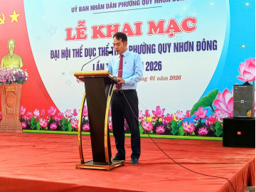 Phát biểu khai mạc đại hội, đồng chí Bùi Duy Ninh - Phó Chủ tịch UBND, Trưởng Ban tổ chức Đại hội TDTT phường Quy Nhơn Đông lần thứ I năm 2026 cho biết: "Những năm qua, phong trào TDTT trên địa bàn phường Quy Nhơn Đông không ngừng được quan tâm, đầu tư và phát triển. Phong trào TDTT quần chúng không chỉ góp phần nâng cao sức khỏe mà còn tăng cường sự gắn kết cộng đồng, xây dựng môi trường văn hóa lành mạnh gắn với Cuộc vận động “Toàn dân rèn luyện thân thể theo gương Bác Hồ vĩ đại” và phong trào “Toàn dân đoàn kết xây dựng đời sống văn hóa”. Đại hội là dịp đánh giá kết quả phong trào TDTT ở địa phương, đồng thời phát huy tinh thần đoàn kết, khuyến khích toàn dân tham gia tập luyện TDTT, giúp nâng cao sức khỏe, thể lực; qua đó tuyển chọn lực lượng tham gia các giải đấu trong khuôn khổ Đại hội TDTT tỉnh Gia Lai năm 2026”.