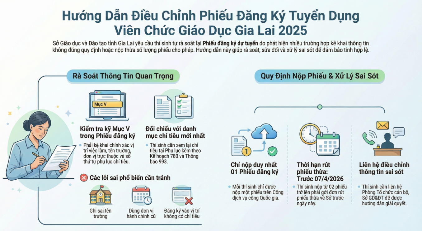 Về việc điều chỉnh, sửa đổi Phiếu đăng ký dự tuyển kỳ tuyển dụng viên chức trong các cơ sở giáo dục mầm non, phổ thông công lập tỉnh Gia Lai năm 2025