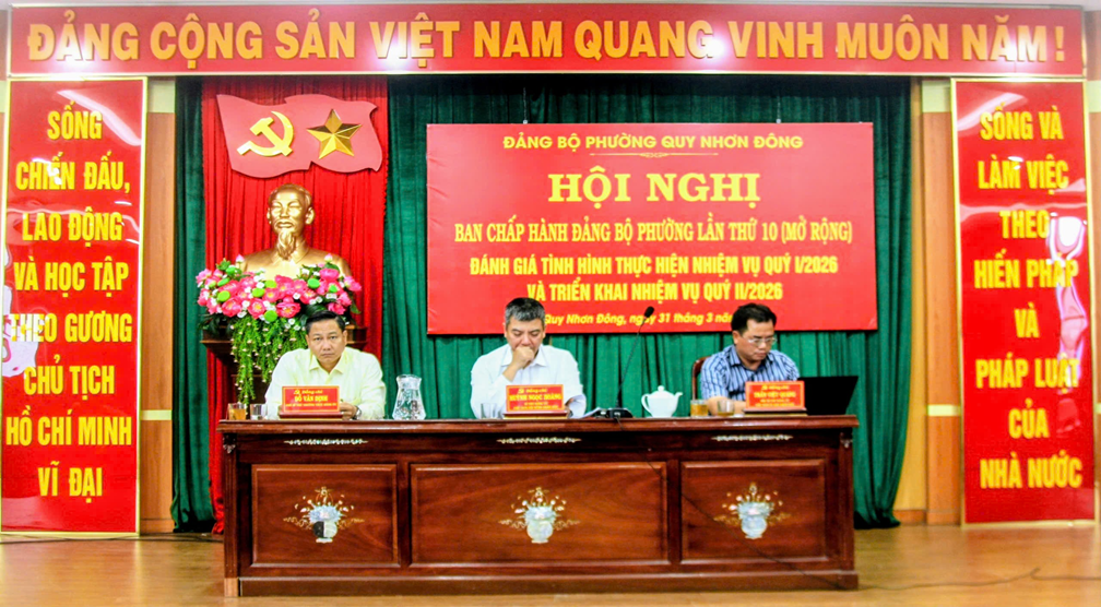 Sáng ngày 31/3, tại Hội trường phường Quy Nhơn Đông, Ban Chấp hành Đảng bộ phường Quy Nhơn Đông tổ chức Hội nghị Ban Chấp hành Đảng bộ phường Lần thứ 10 (mở rộng) nhằm đánh giá tình hình thực hiện nhiệm vụ quý I và triển khai nhiệm vụ trọng tâm quý II năm 2026.