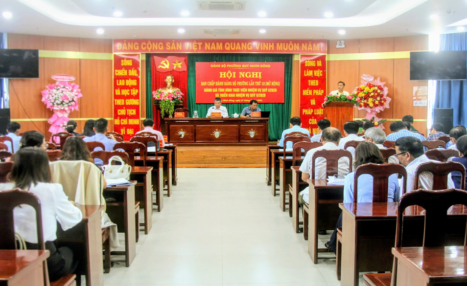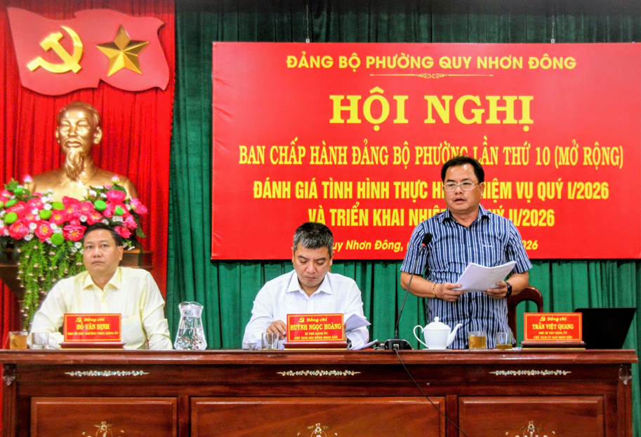 Về nhiệm vụ trọng tâm quý II năm 2026, Đảng bộ phường Quy Nhơn Đông xác định tiếp tục quán triệt, triển khai hiệu quả các nghị quyết của Trung ương, của tỉnh và phường; tập trung xây dựng Đảng và hệ thống chính trị trong sạch, vững mạnh; nâng cao chất lượng công tác tuyên truyền, giáo dục chính trị tư tưởng; thực hiện tốt công tác tổ chức cán bộ, phát triển đảng viên; tăng cường công tác kiểm tra, giám sát, nội chính, phòng chống tham nhũng, tiêu cực. Đồng thời, nâng cao hiệu lực, hiệu quả hoạt động của chính quyền, MTTQ và các đoàn thể. Tập trung lãnh đạo phát triển kinh tế - xã hội toàn diện; tăng cường quản lý quy hoạch, đất đai, trật tự xây dựng, đẩy nhanh tiến độ các dự án, giải phóng mặt bằng; phát triển thương mại - dịch vụ - du lịch; tổ chức lễ hội quảng bá, phát triển du lịch năm 2026 gắn với các chuỗi sự kiện Năm du lịch quốc gia năm 2026 do UBND tỉnh tổ chức; ban hành Đề án phát triển kinh tế đêm; hỗ trợ doanh nghiệp và các cơ sở sản xuất kinh doanh; Chú trọng phát triển văn hóa - xã hội; nâng cao chất lượng giáo dục, y tế; thực hiện đầy đủ, kịp thời các chính sách an sinh xã hội. Tiếp tục giữ vững quốc phòng - an ninh, bảo đảm trật tự an toàn xã hội; nâng cao hiệu quả công tác tiếp công dân, giải quyết đơn thư. Đẩy mạnh cải cách hành chính, chuyển đổi số, xây dựng chính quyền điện tử, phấn đấu hoàn thành thắng lợi các mục tiêu, nhiệm vụ đã đề ra.