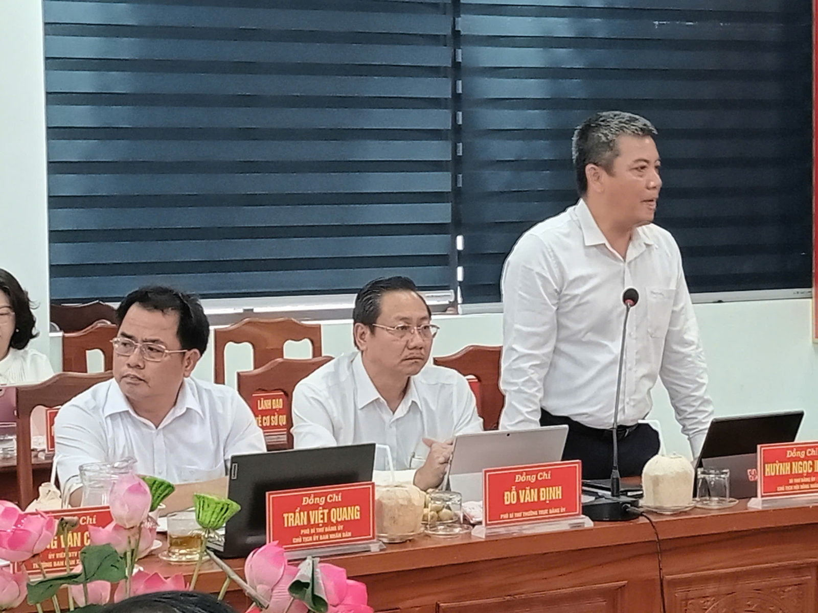 Đồng chí Trần Việt Quang – Phó Bí thư Đảng ủy, Chủ tịch UBND phường Quy Nhơn Đông báo cáo tại buổi làm việc