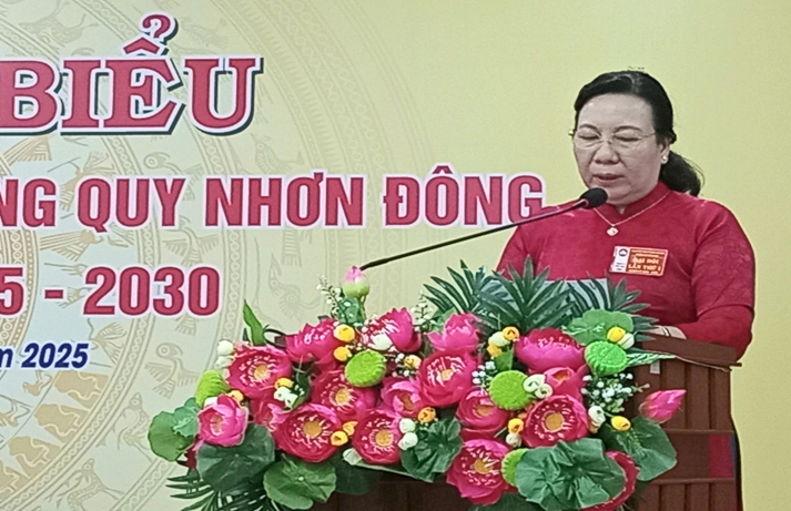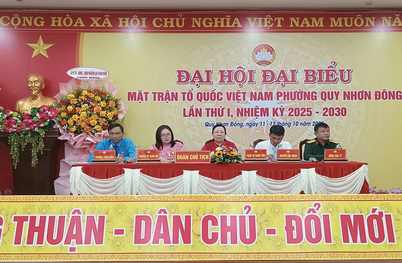 Báo cáo chính trị do đồng chí Nguyễn Thị Thanh Vân - Phó Chủ tịch thường trực Ủy ban MTTQ Việt Nam, Chủ tịch Hội LHPN phường trình bày tại Đại hội cho biết: Phường Quy Nhơn Đông được thành lập trên cơ sở sáp nhập từ 4 phường, xã: Nhơn Bình, Nhơn Lý, Nhơn Hải và Nhơn Hội. Sau sáp nhập, hoạt động của Mặt trận Tổ quốc và các tổ chức thành viên nhanh chóng ổn định, triển khai nhiều hoạt động thiết thực, phát huy sức mạnh khối đại đoàn kết toàn dân.