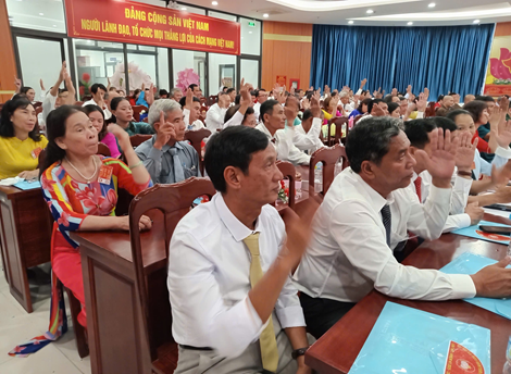 Các đại biểu biểu quyết thông qua nhân sự ủy viên Ủy ban MTTQ Việt Nam phường Quy Nhơn Đông khóa I, nhiệm kỳ 2025 – 2030