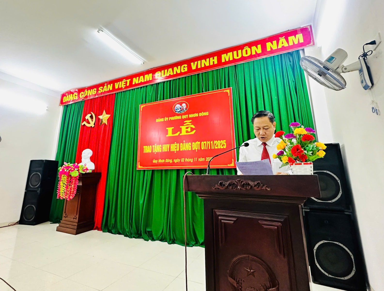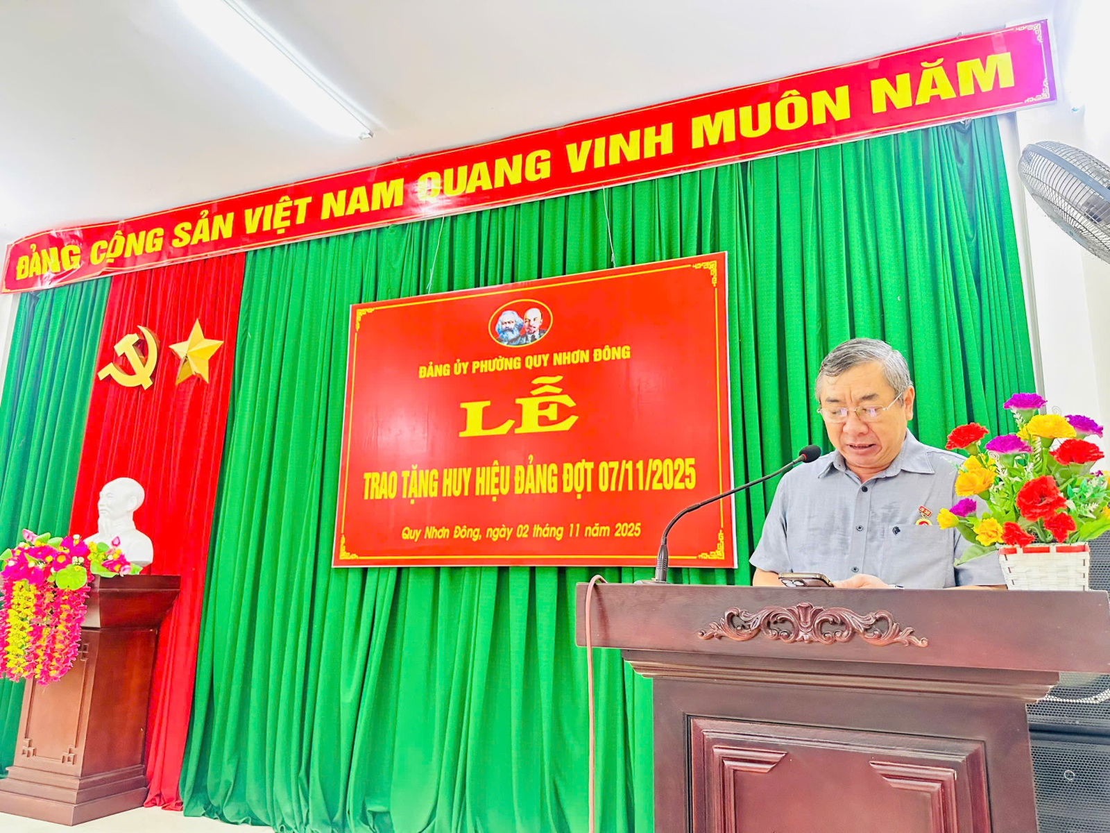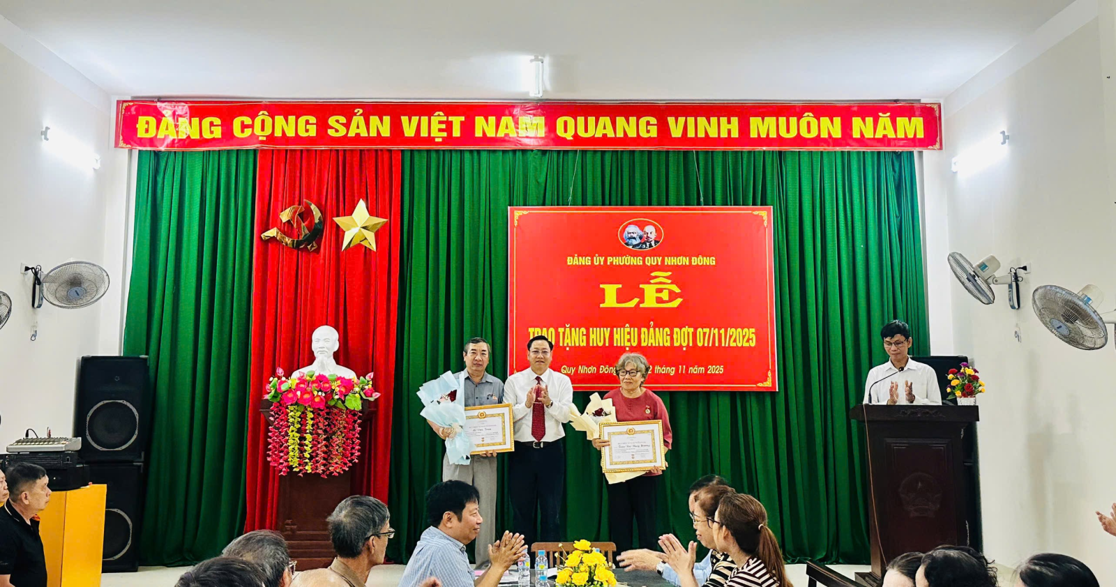 Nhân kỷ niệm 108 năm Cách mạng Tháng Mười Nga (07/11/2017-07/11/2025), sáng ngày 02/11, tại Khu sinh hoạt Khu phố 1, Đảng ủy phường Quy Nhơn Đông tổ chức Lễ trao tặng Huy hiệu 30 năm tuổi Đảng đợt 7/11 cho 02 đảng viên đang sinh sống trên địa bàn khu phố 1. Tham dự buổi Lễ có các đồng chí: Đỗ Văn Định - Phó Bí thư Thường trực Đảng ủy phường; Nguyễn Huỳnh Đức Vĩ - Đảng ủy viên, Phó Trưởng ban Ban Xây dựng Đảng; Đỗ Xuân Nhất - Đảng ủy viên, Trưởng Phòng VH-XH phường cùng các đảng viên chi bộ khu phố.