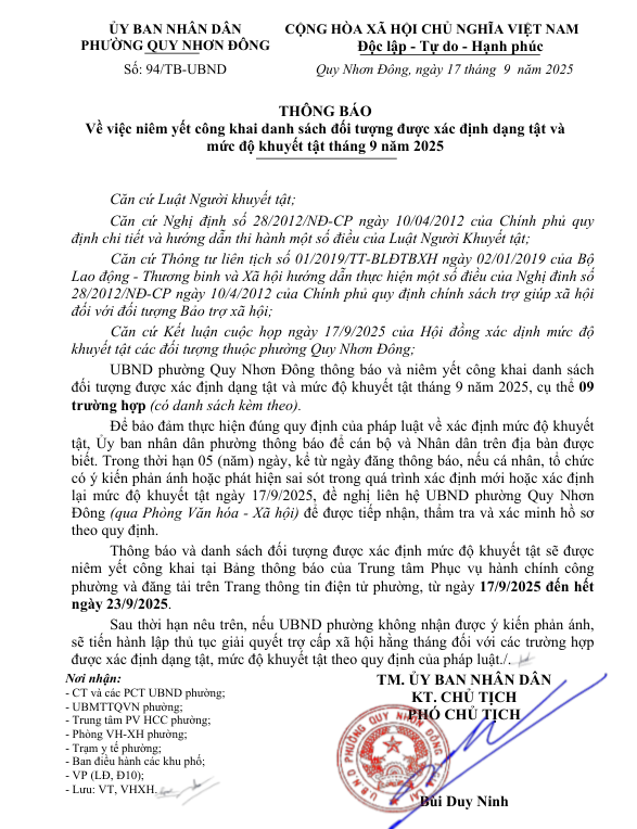 Thứ hai, 22/09/2025 | 15:35 A- A A+ | THÔNGBÁO: Về việc niêm yết công khai danh sách đối tượng được xác định dạng tật và mức độ khuyết tật tháng 9 năm 2025 Chia sẻ Đọc bài Lưu CHI TIẾT XEM TẠI TẬP TIN ĐÍNH KÈM Tập tin đính kèm Trình duyệt không hỗ trợ iframe.