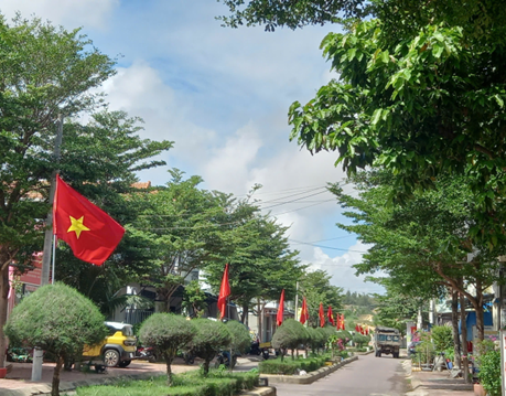 Các trục đường tại các khu phố được người dân treo cờ Tổ quốc