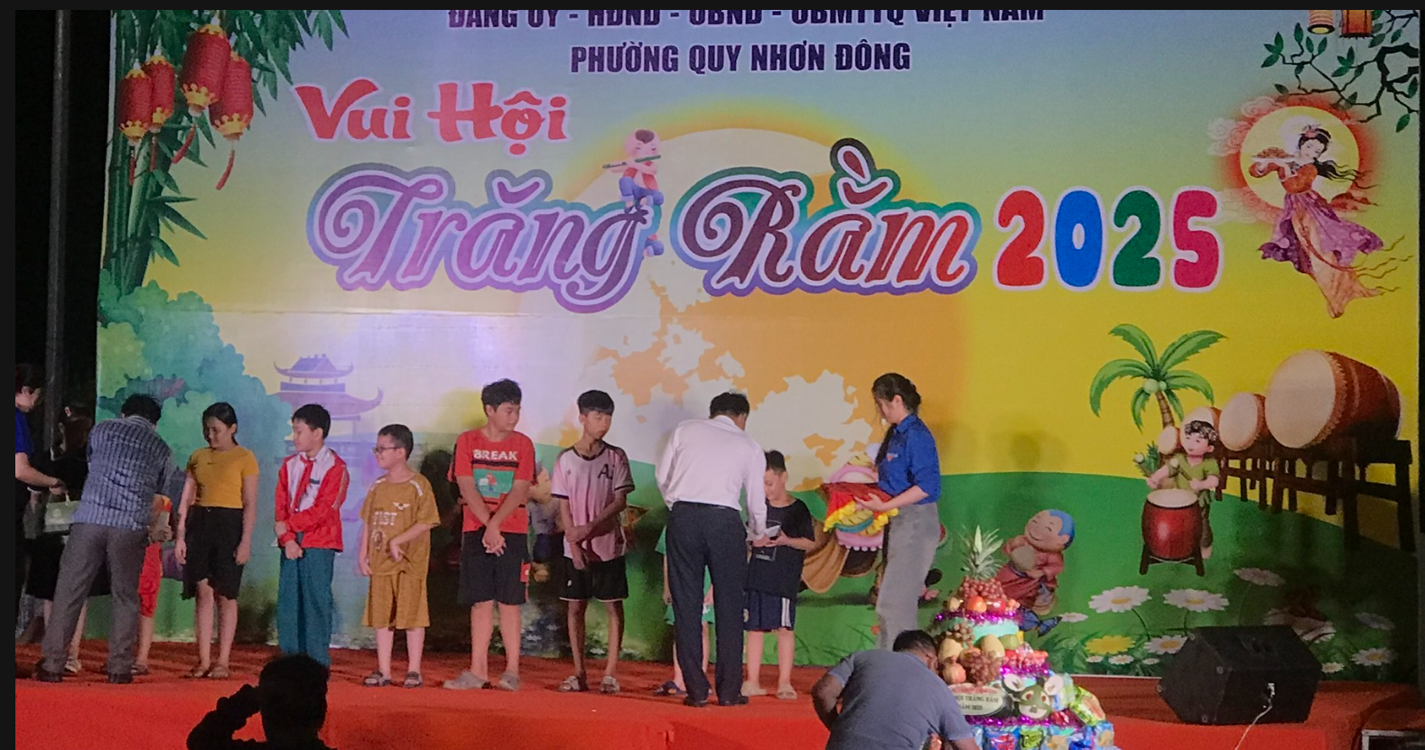 Tối ngày 4/10 (nhằm ngày 13/8 Âm lịch), Đảng ủy, HĐND, UBND, Ủy ban MTTQ Việt Nam phường Quy Nhơn Đông tổ chức chương trình vui Tết Trung thu 2025 với chủ đề “Vui hội trăng rằm” cho các em thiếu nhi trên địa bàn phường.