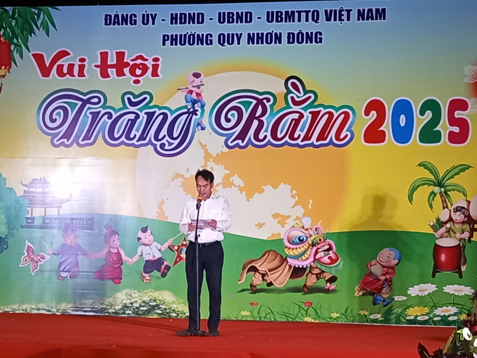 Tại chương trình, đồng chí Bùi Duy Ninh – Đảng ủy viên, Phó Chủ tịch UBND phường Quy Nhơn Đông đọc thư của Chủ tịch nước Lương Cường gửi các cháu thiếu nhi nhân dịp Tết Trung thu năm 2025. Đồng thời, ghi nhận, cảm ơn sự chung tay của các phòng, ban, đơn vị thuộc phường và nhân dân địa phương trong việc mang đến cho thiếu nhi một mùa Trung thu ấm áp, trọn vẹn. Trung thu là Tết của tình thân, của yêu thương và sẻ chia; mỗi phần quà trao gửi tuy nhỏ bé nhưng chứa đựng nhiều tình cảm, thể hiện sự quan tâm của gia đình, thầy cô, chính quyền và cộng đồng. Đồng chí Phó Chủ tịch UBND phường bày tỏ mong muốn các em thiếu nhi luôn chăm ngoan, hiếu thảo, biết sẻ chia, nuôi dưỡng ước mơ trong sáng và nỗ lực vươn lên, để sau này trở thành những công dân tốt, góp phần xây dựng quê Đất nước.