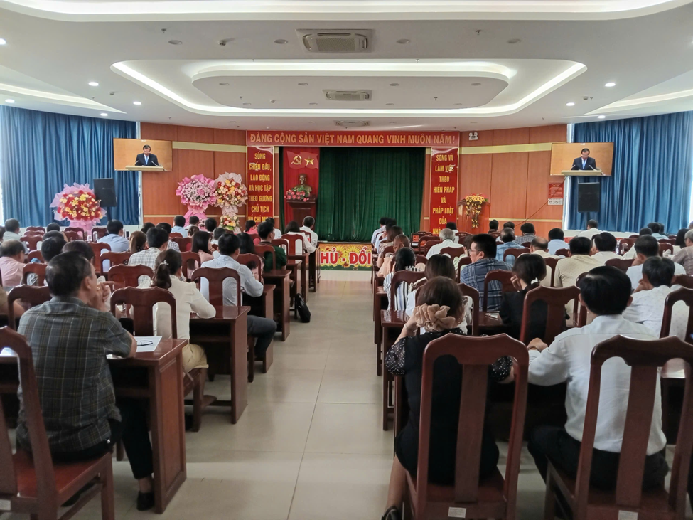 Ảnh: Quang cảnh hội nghị tại điểm cầu Hội trường phường Quy Nhơn Đông