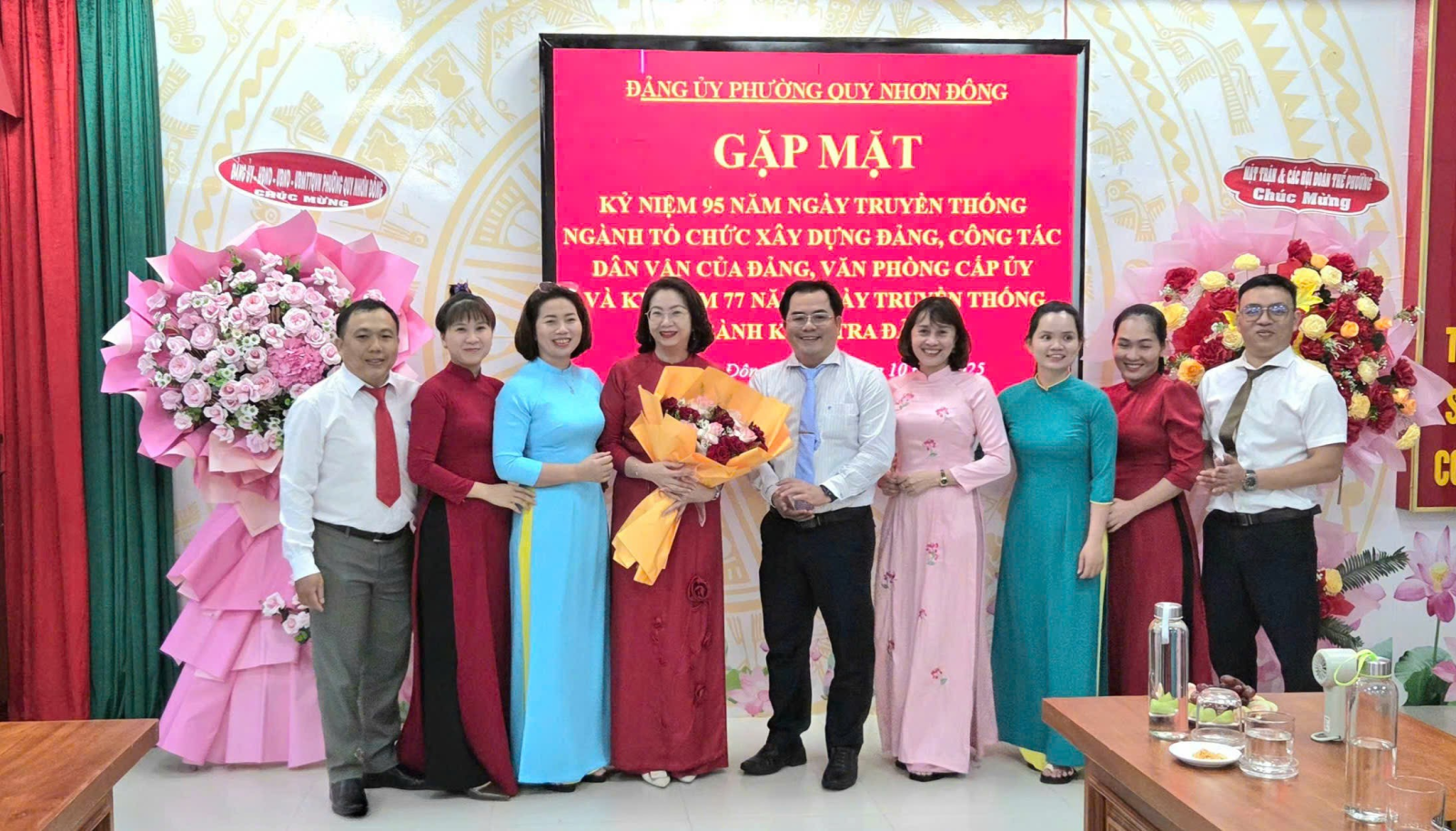 Chiều ngày 14/10, Đảng ủy phường Quy Nhơn Đông long trọng tổ chức gặp mặt kỷ niệm 95 năm Ngày truyền thống ngành Tổ chức xây dựng Đảng (14/10/1930 - 14/10/2025), Công tác Dân vận của Đảng (15/10/1930 - 15/10/2025), Văn phòng cấp ủy (18/10/1930 - 18/10/2025) và 77 năm Ngày truyền thống ngành Kiểm tra của Đảng (16/10/1948 - 16/10/2025).